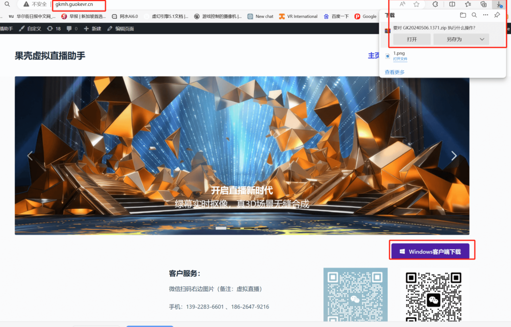 1)打开浏览器,输入http://gkmh.guokevr.cn,点击Windows客户端下载,下载完后,进行解压,安装。