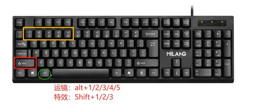 2)如要手动触发特效/运镜,需要用键盘快捷键,场景相应的快捷键如上图二所示,具体触发的按钮如下图所示: