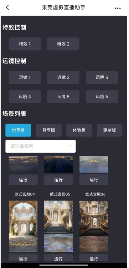 可以通过双击场景图片 打开新场景,其次支持 特效 及 运镜 播放。注意:手机操作同时只支持单个手机操作,要换手机,得先退出之前已经进入的手机的操控页面。